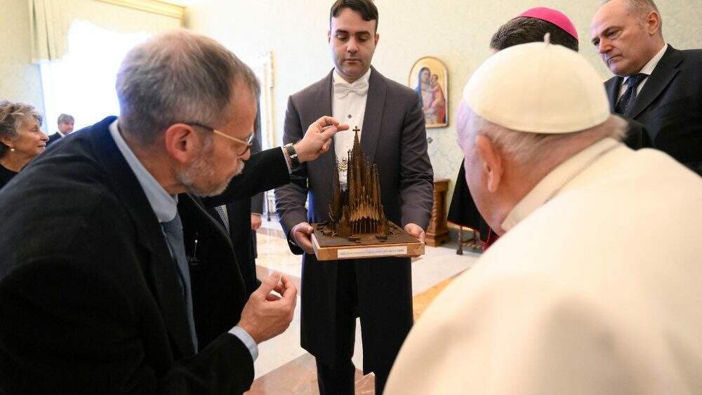 O Papa convidou a “Junta Construtora” a receber os peregrinos com proximidade “para introduzi-los com uma atitude orante a contemplar o projeto iconográfico do Servo de Deus Antoni Gaudí na sua totalidade”. Desse modo, “como os pináculos e campanários, seus olhares se elevem”.