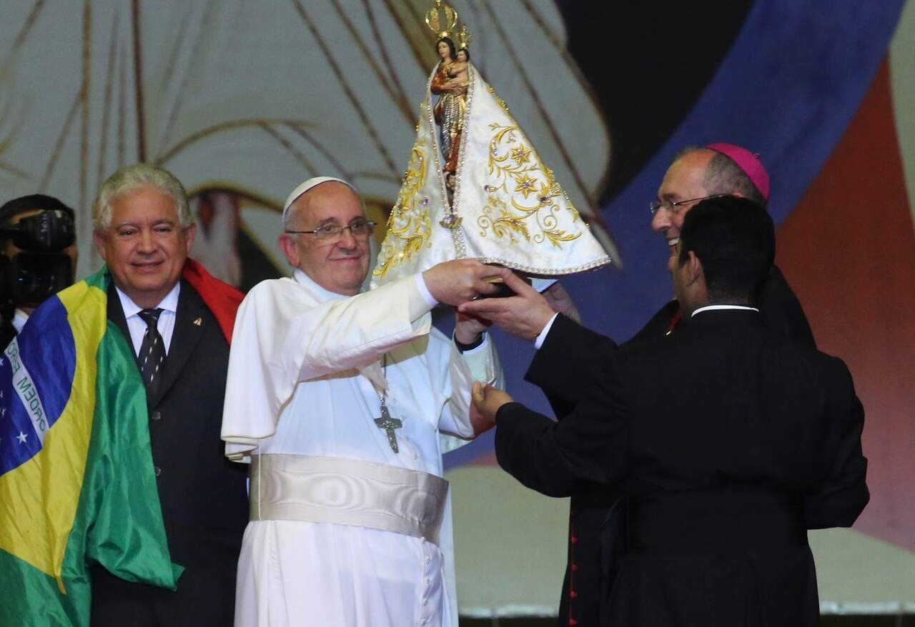 Papa Leão XIV recebe imagem de Nossa Senhora Aparecida dos redentoristas