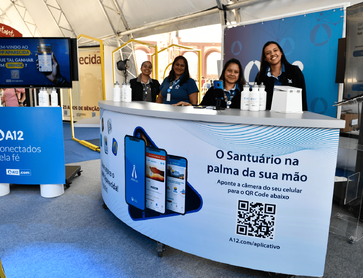Estande da TV Aparecida em atendimento aos devotos