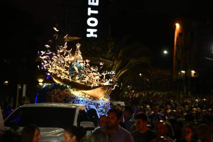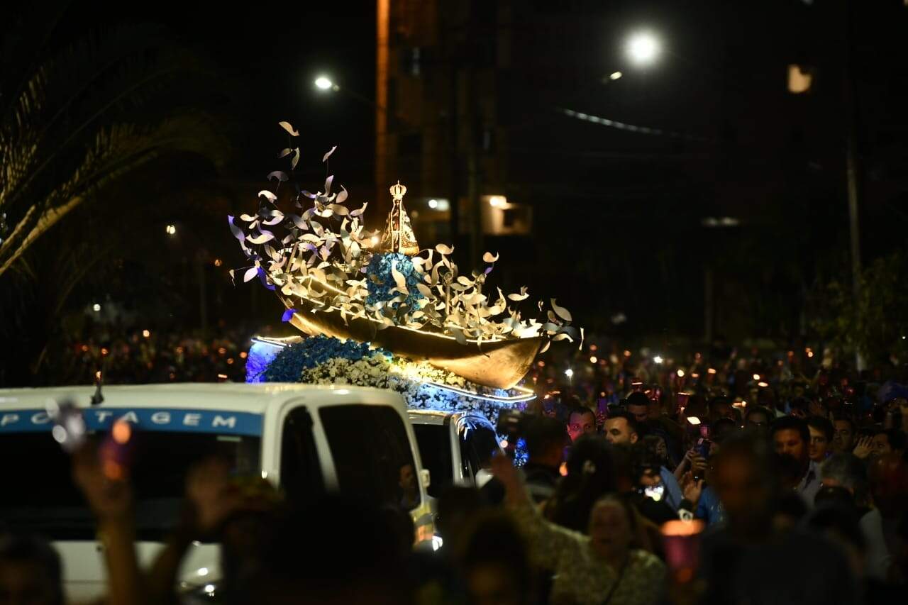 A caminhada partiu do Santuário Nacional por volta das 20h30, após a celebração da Novena Solene, até a Capela São Geraldo, no Porto Itaguaçu, local onde aconteceu a pesca milagrosa.