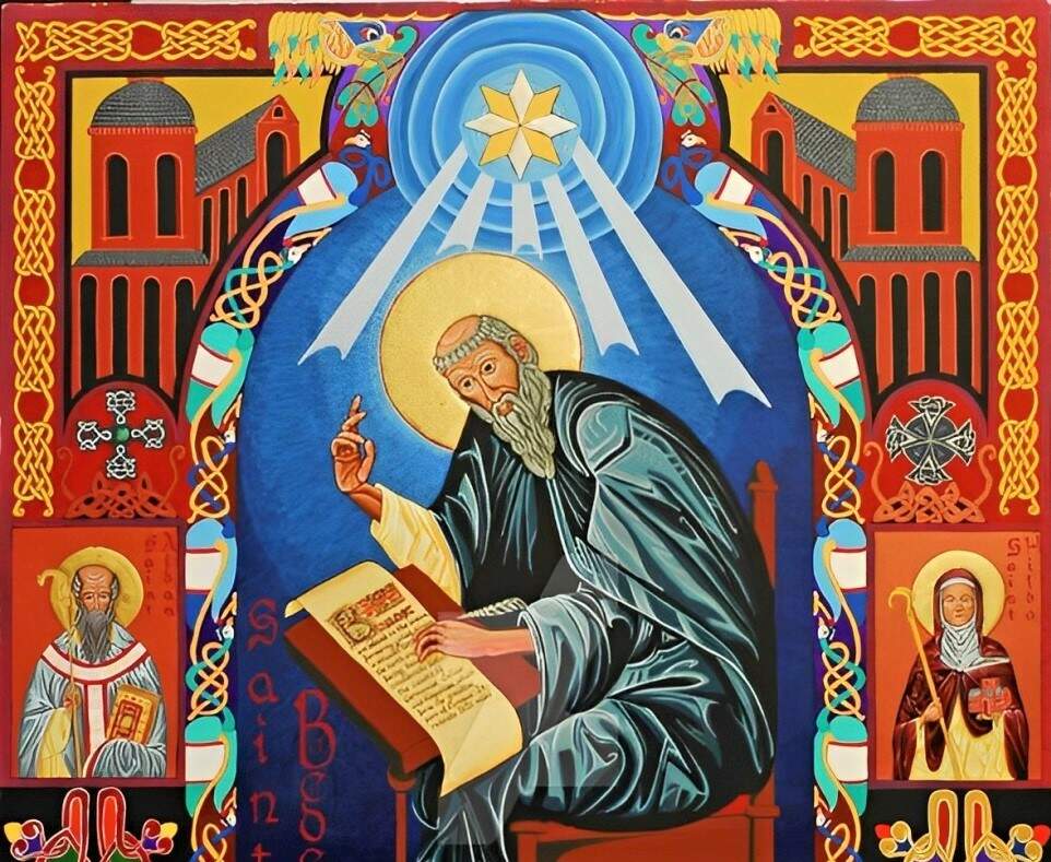 Beda nasceu entre os anos 672 e 673. Tornou-se diácono aos 19 anos e foi ordenado sacerdote aos 30, dedicando toda a sua existência ao estudo das Escrituras Sagradas. Seus únicos interesses eram aprender, ensinar e escrever sempre. Seus dias eram iluminados pela oração e o canto em coro.