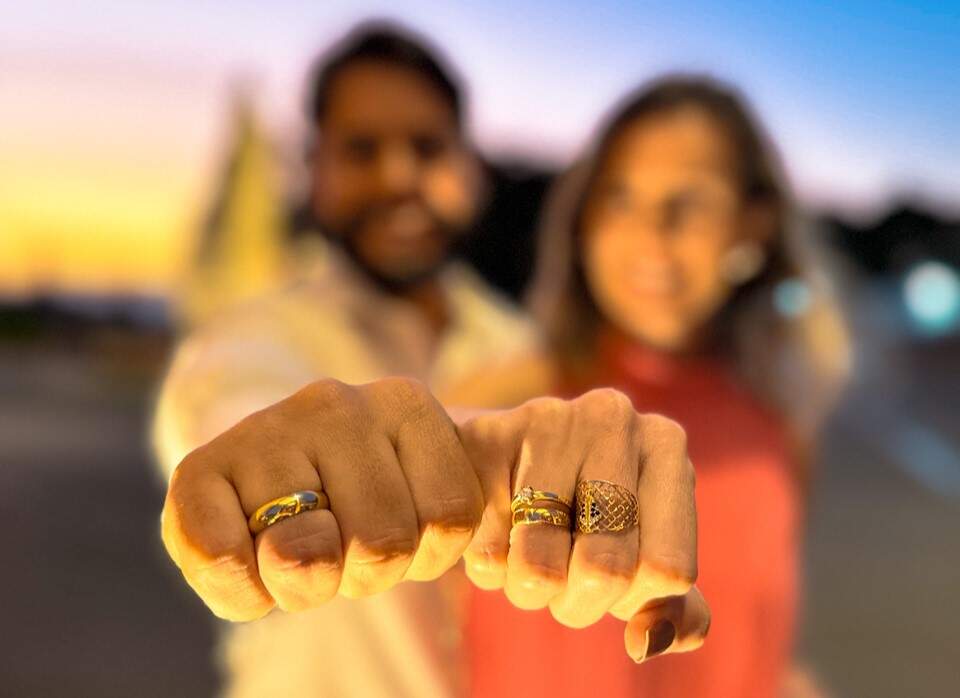Desse modo, o sinal escolhido pelo casal para lembrarem dessa fidelidade a Deus foi a aliança. “Nada mais simbólico do que as alianças para recordarem diariamente a nós que, unidos, devemos servir a Deus.”, ressaltou o noivo.