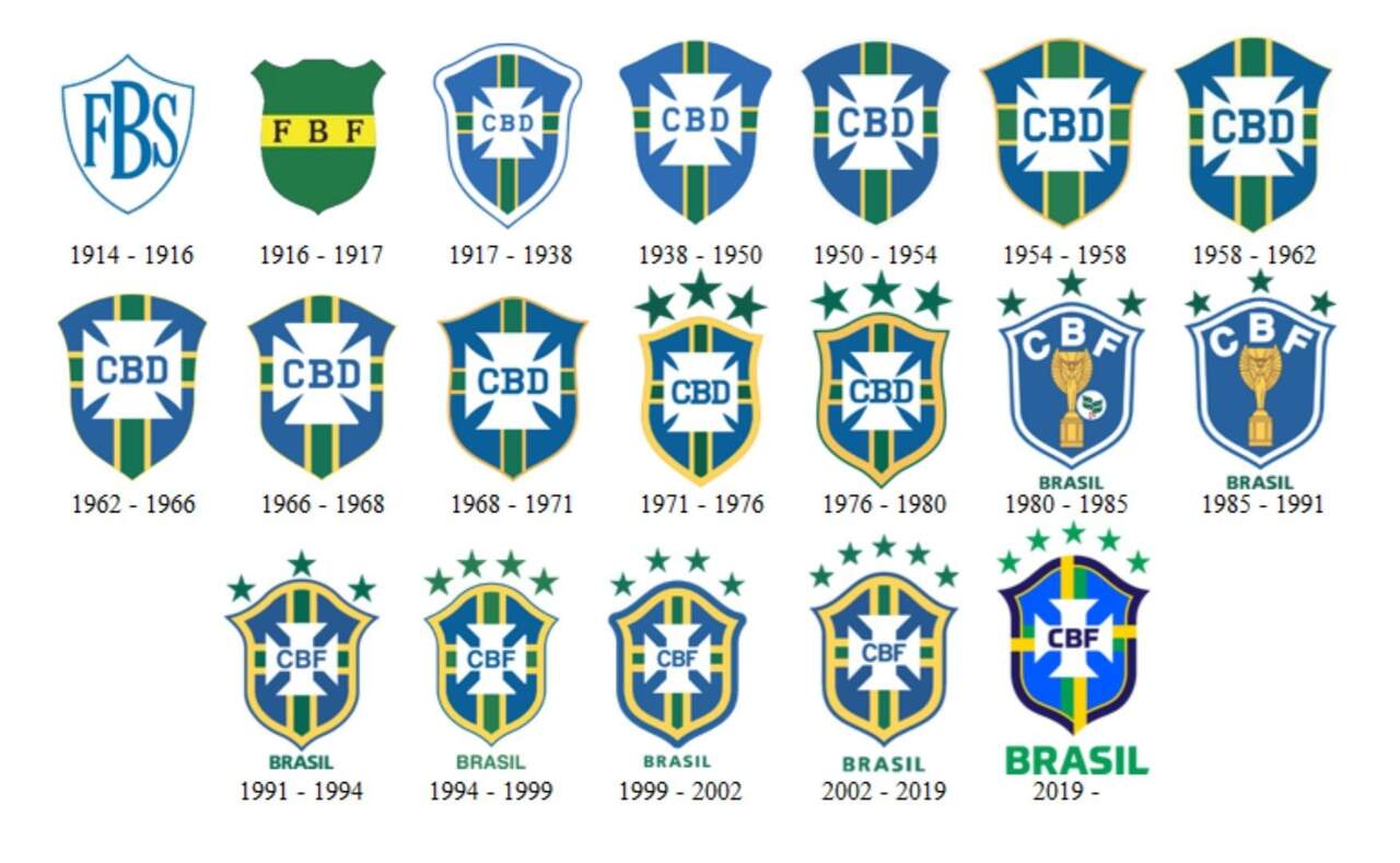 O famoso escudo da Confederação Brasileira de Futebol (CBF) está praticamente com o mesmo formato desde 1916, quando ainda era a Confederação Brasileira de Desportos (CBD).