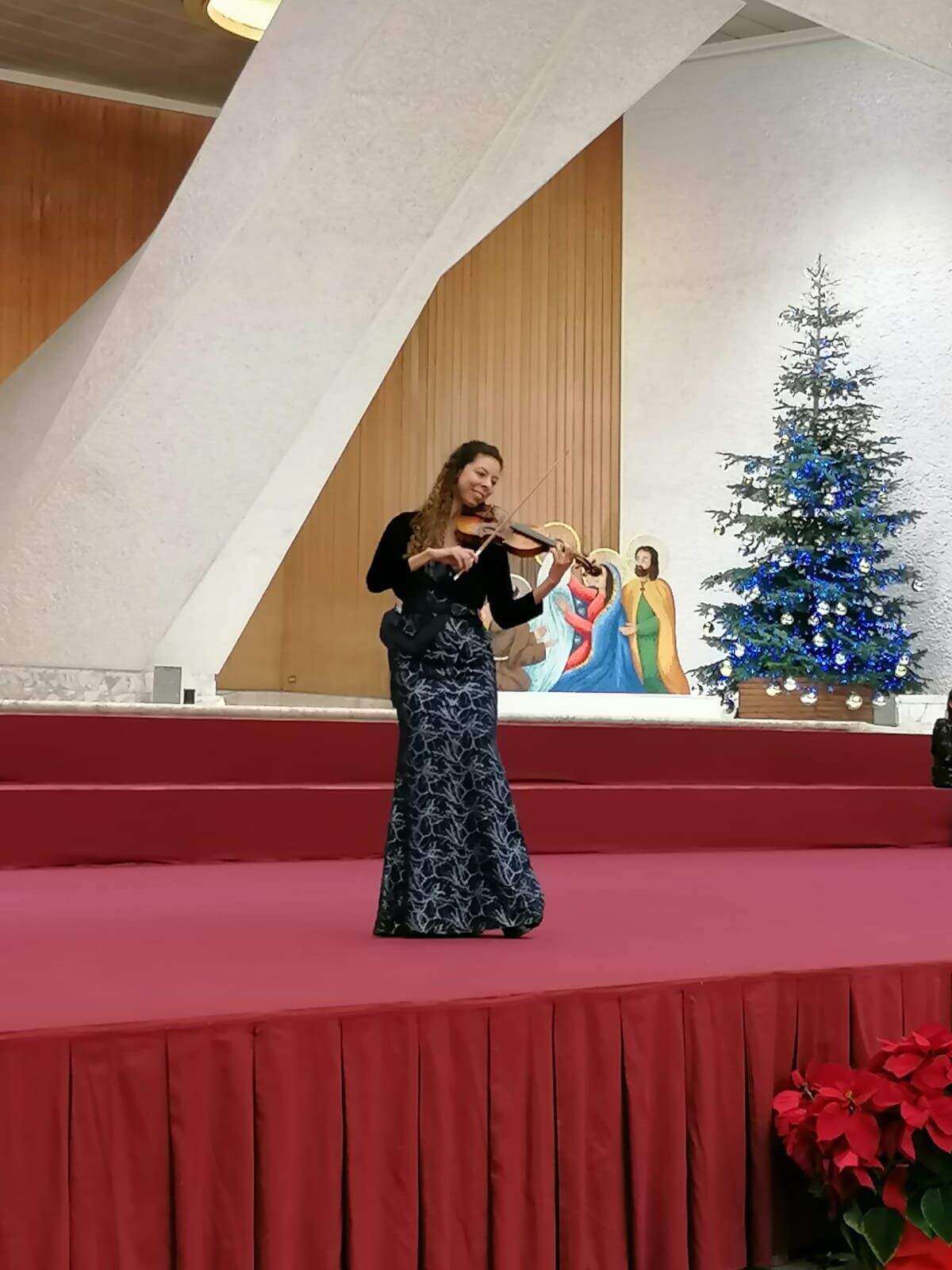 A violinista que é natural de Lorena, interior de São Paulo, já fez parte da equipe organizadora do Encontro Internacional de Corais, reunindo coristas de todo o mundo e colaborou com a Orquestra Diocese de Roma. Além disso, também foi escolhida para traduzir a Oração do Corista, composta por Don Marco Frisina, uma das maiores referências da música na Igreja Católica.