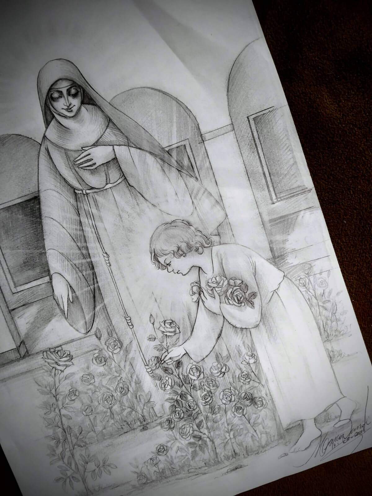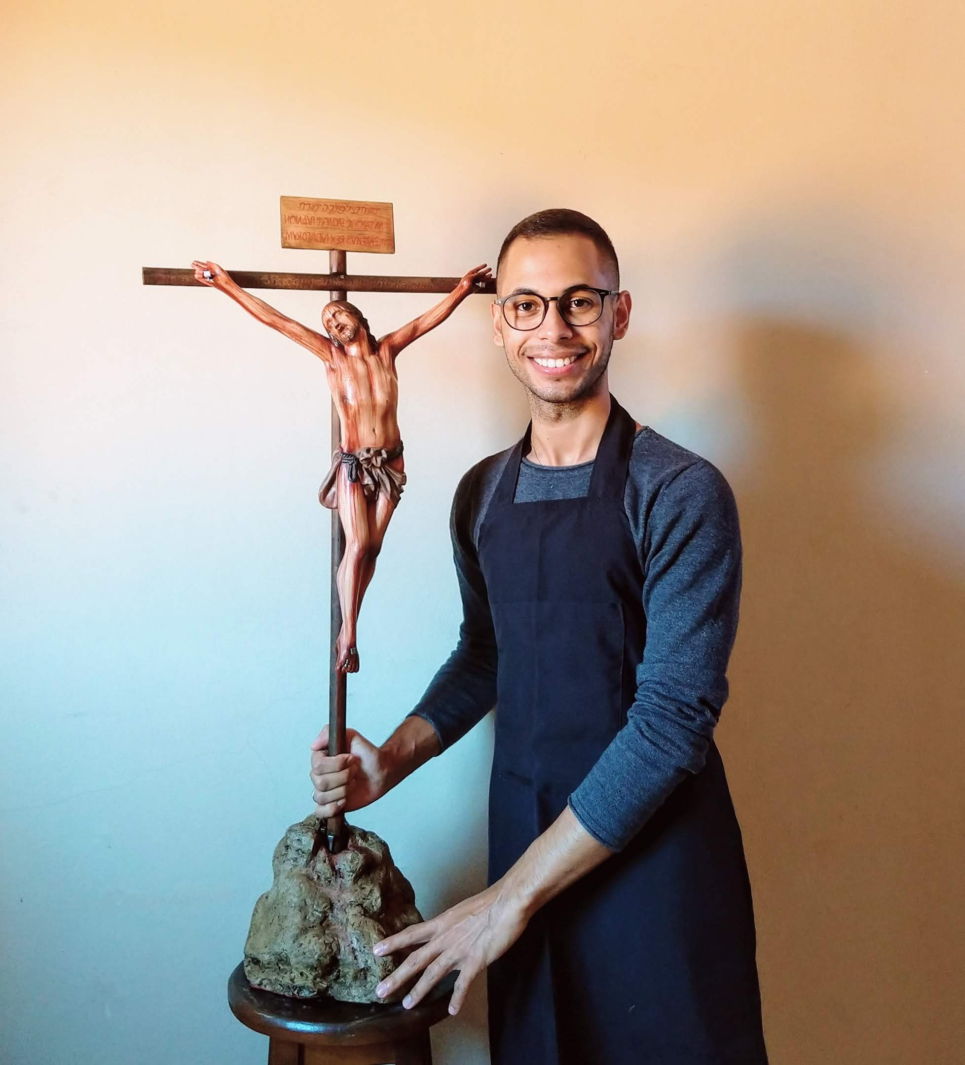 Desde a adolescência ele desenha, pinta e se aprofunda na arte sacra.