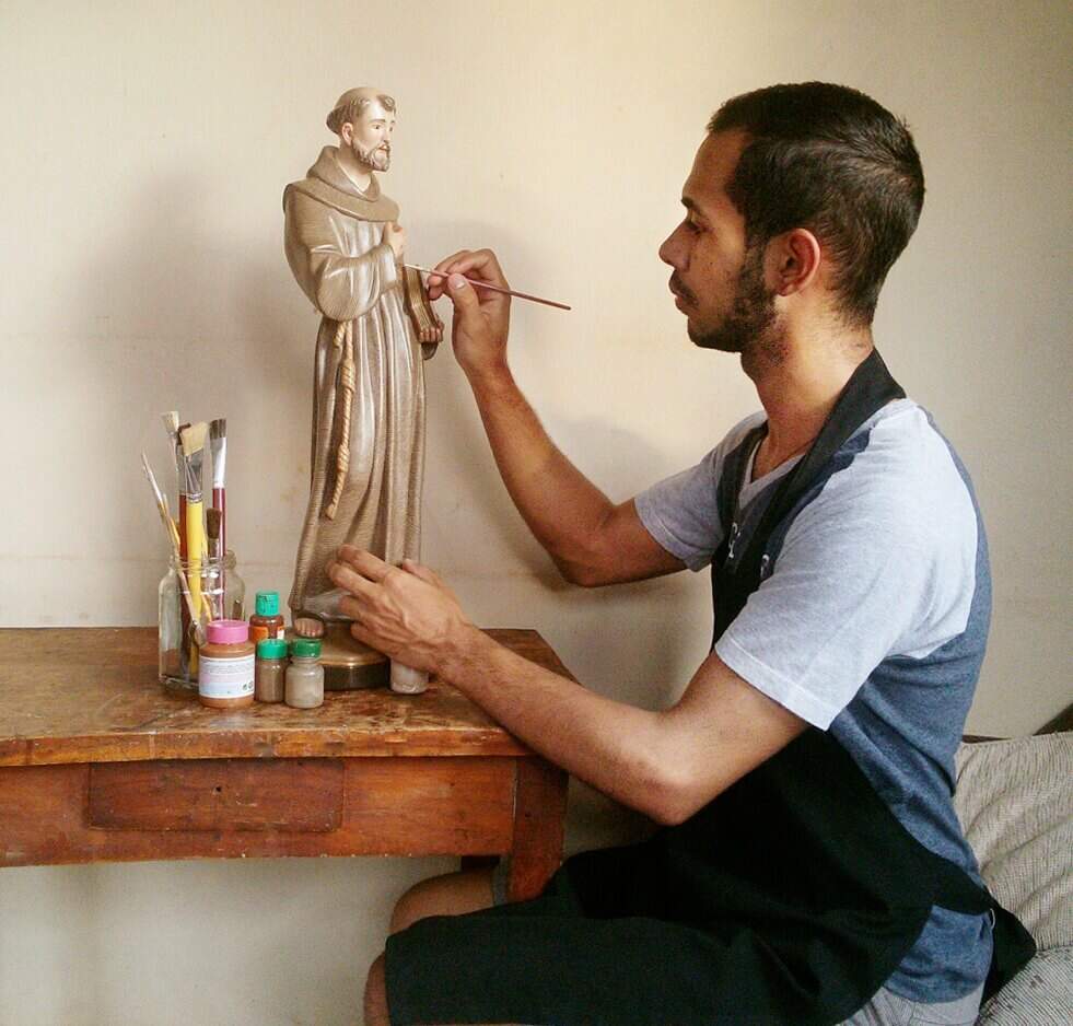 Desde que começou a aprimorar conhecimentos sobre arte sacra, nunca mais parou e o artista nunca mais adormeceu, o que terminou ofuscando, com o tempo, outros trabalhos que exerceu como trabalhador em uma usina de álcool, funcionário de cartório, bancário e secretário paroquial (este último emprego antes de assumir de vez a profissão).
