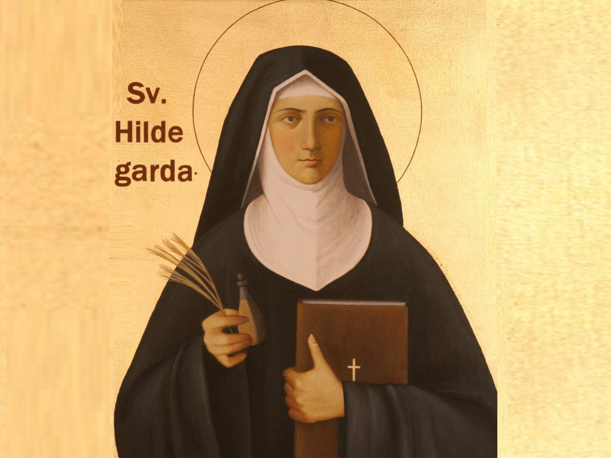 Santa Hildegarda Von Bingen (1098–1179) foi uma monja alemã de origem nobre, reconhecida por suas visões místicas e por sua vasta contribuição em diversas áreas, como medicina, música, literatura e teatro.