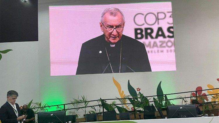 Despertar para a consciência espiritual e social foi a principal mensagem lida pelo secretário de Estado do Vaticano, Cardeal Pietro Parolin, o enviado de Leão XIV à Conferência do Clima, após confirmar à Ministra do Meio Ambiente e Mudança do Clima do Brasil, Marina Silva, que não viria à COP30.