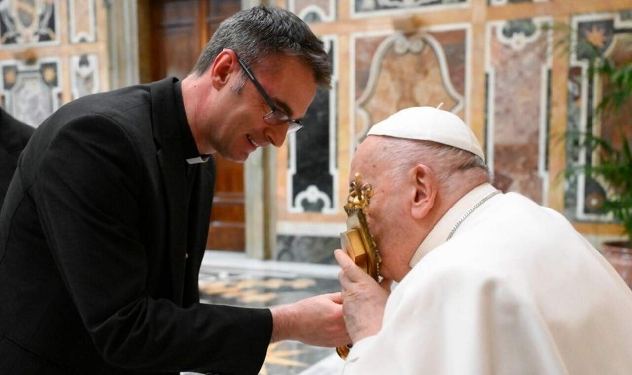 Papa Leão XIV recebe imagem de Nossa Senhora Aparecida dos redentoristas