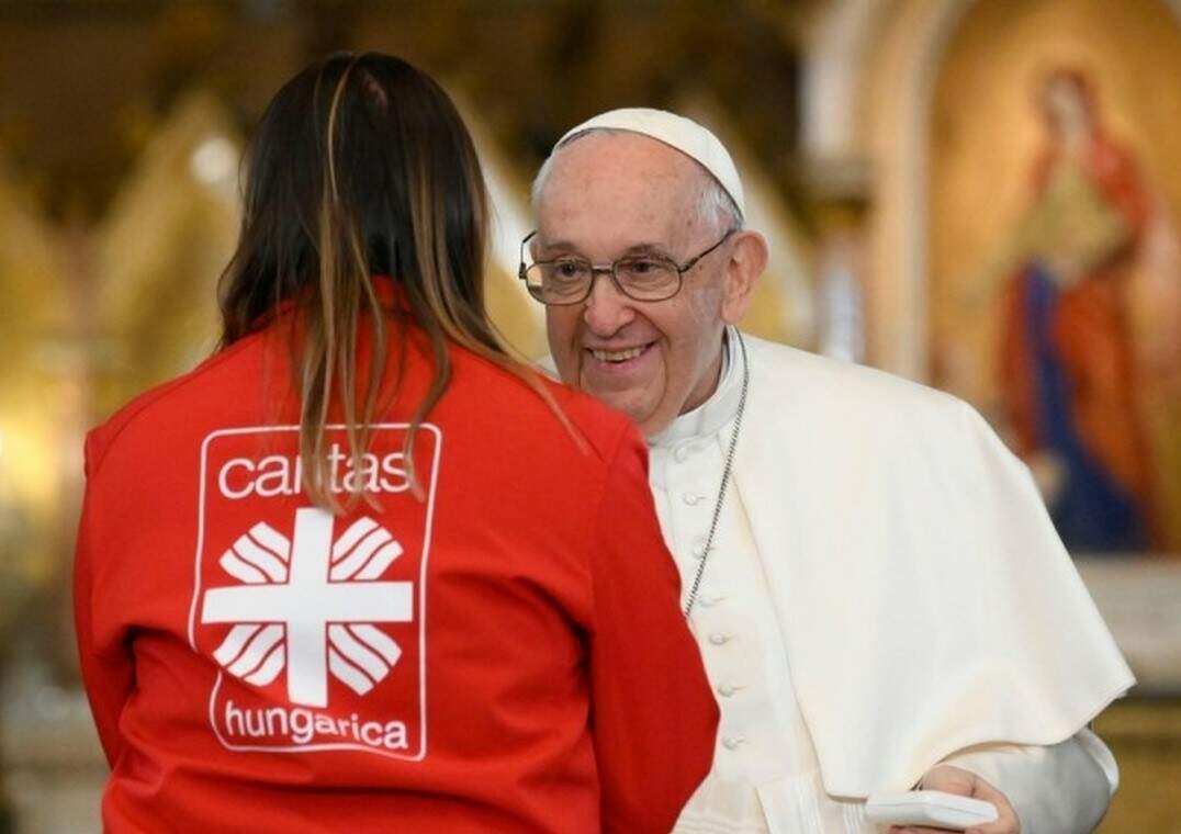 "E a propósito exprimo a minha gratidão à Igreja húngara pelo compromisso posto na caridade, um compromisso capilar: ela criou uma rede que liga muitos agentes pastorais, muitos voluntários, as caritas paroquiais e diocesanas, mas também grupos de oração, comunidades de fiéis, organizações pertencentes a outras Confissões, mas unidas na comunhão ecumênica que brota da caridade".