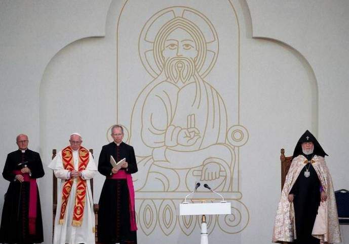 No domingo (26), Papa Francisco foi recebido pelos 14 bispos católicos armênios e participou da celebração da Divina Liturgia, presidida pelo Patriarca Karekin II. Em sua intervenção, Francisco pediu novamente pela unidade "Que a Igreja armênia caminhe em paz, e a comunhão entre nós seja plena. Surja em todos um forte anseio de unidade", frisou.