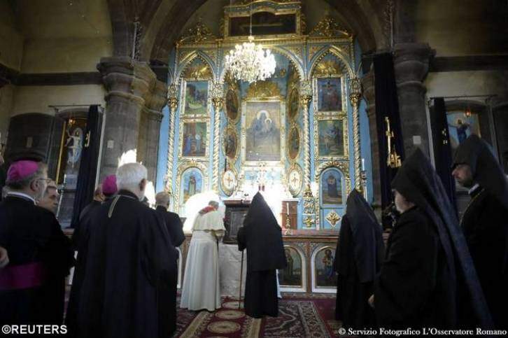 Na Catedral Apostólica, em Etchmiadzin, na sexta-feira (24), o Papa vivenciou alguns momentos de oração. Ali falou sobre a fé do povo armênio e enfatizou o apelo para a unidade religiosa. "Agradeço ao Senhor também pelo caminho que a Igreja Católica e a Igreja Apostólica Armênia realizaram, através de um diálogo sincero e fraterno, para chegar à plena partilha da Mesa Eucarística. Que o Espírito Santo nos ajude a realizar a unidade pela qual rezou nosso Senhor, pedindo que todos os seus discípulos sejam um só e o mundo creia", disse Francisco.