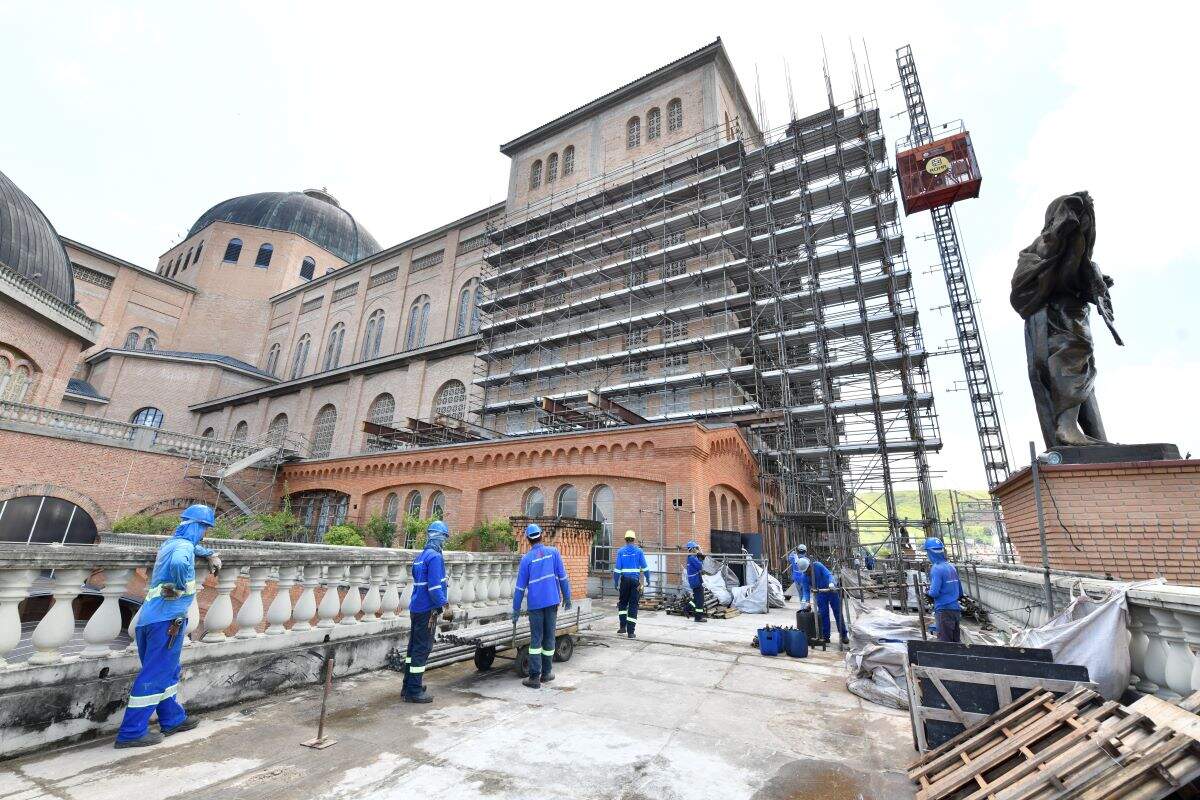"Se tudo der certo, nós começamos a revestir, a instalar o mosaico nas paredes do Santuário nos primeiros dias de setembro. Se tudo funcionar corretamente, nós devemos ter de três a quatro meses de trabalho para instalação do mosaico. Com o mosaico instalado, gastamos mais um tempo para descer o andaime e já sabemos que o reforço estrutural da colunata só fica pronto no final de 2023.