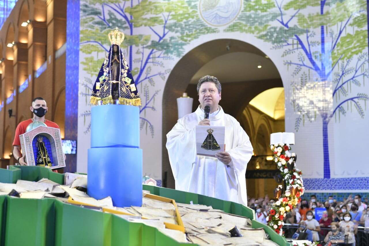 O presidente da Santa Missa, padre Eduardo Catalfo, reitor do Santuário Nacional, destacou a presença de Maria, simples e silenciosa, que convida o fiel a buscar a pureza interior e motiva cada vez mais os seres humanos a buscarem a serenidade na graça do Senhor.