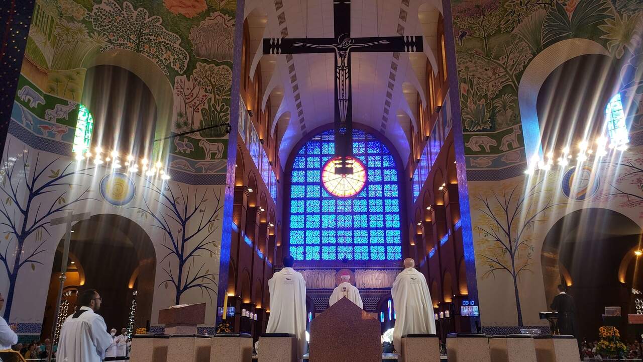 Continuando as celebrações da Páscoa do Senhor, a Santa Missa foi realizada no Altar Central do Santuário Nacional, às 8h e presidida pelo Arcebispo de Aparecida, Dom Orlando Brandes.