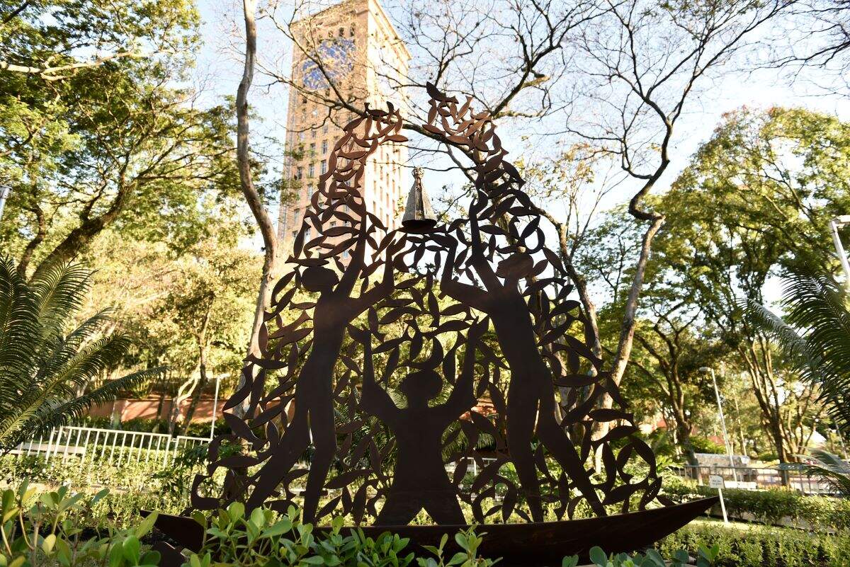 👉E nos Jardins do Santuário, o monumento em homenagem aos 300 anos do encontro da Imagem traz os três pescadores no barco, uma trama de peixes e a imagem de Nossa Senhora Aparecida. A peça está instalada próxima à Avenida do Convento dos Redentoristas.