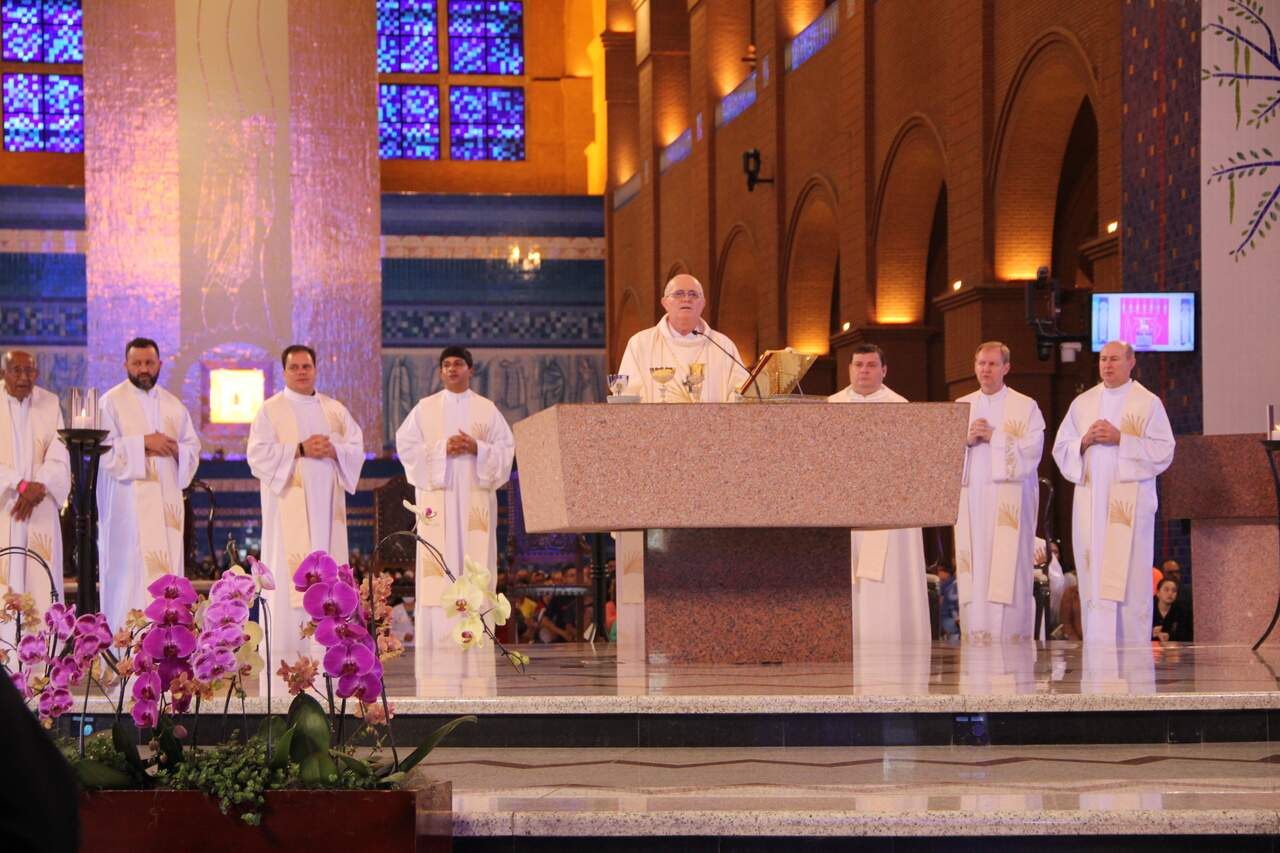 No Altar Central da Casa da Mãe, Dom Odelir José Magri, Bispo de Chapecó (SC), foi o responsável por presidir a celebração que contou ainda com padres concelebrantes.