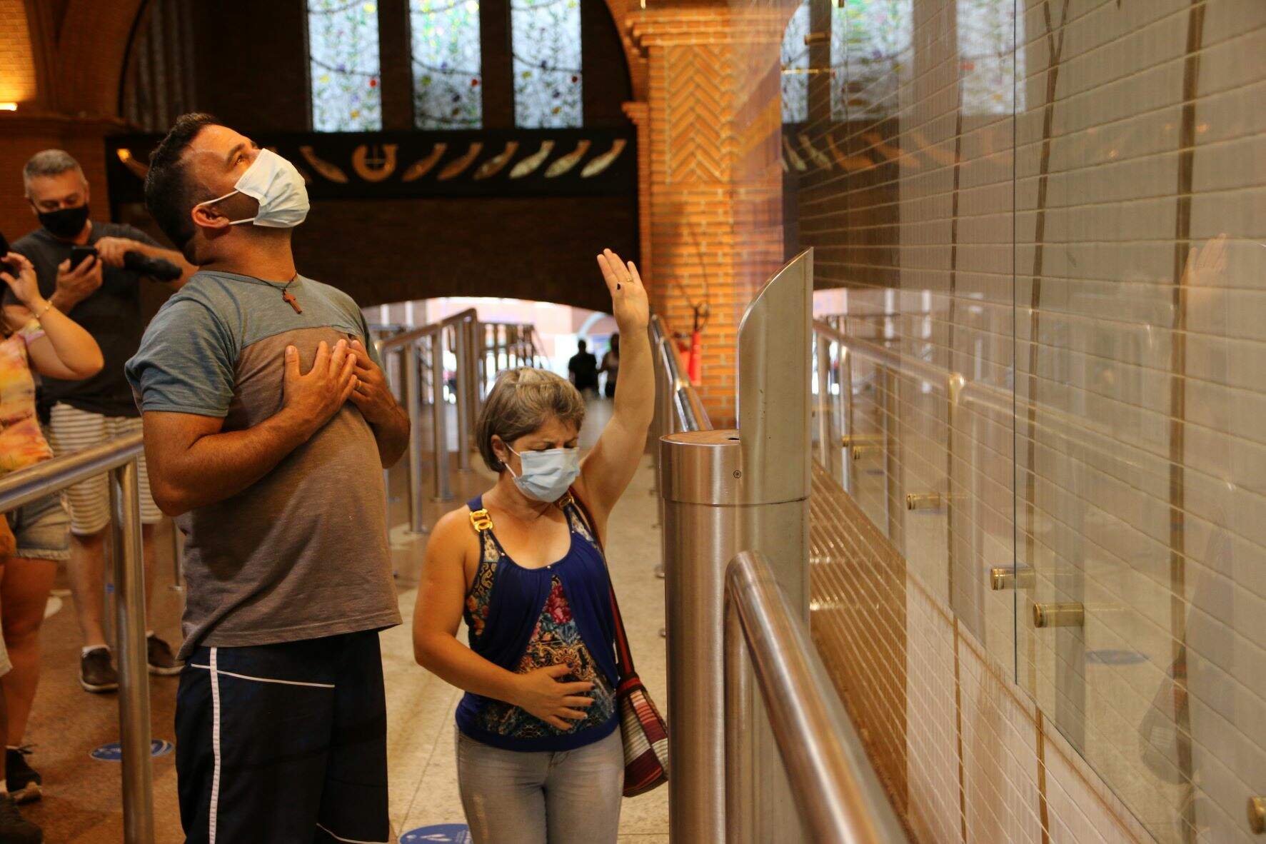 Ainda com a capacidade reduzida de público, em razão da pandemia da Covid-19, os devotos puderam rezar, diante do altar da Mãe Aparecida, em sufrágio pela alma das vítimas e pelo consolo de seus familiares.