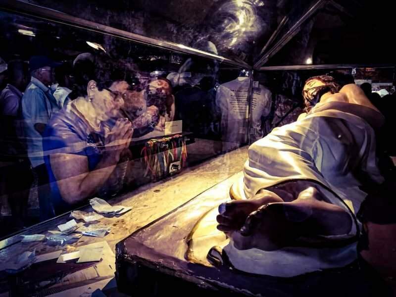 A gruta tem cerca de 50 metros de comprimento, 15 metros de largura e 7 metros de altura. Ali, diante da imagem do Cristo na Cruz, hoje, uma réplica da original (que se perdeu num incêndio, em 1903), o romeiro reza, canta, ajoelha, cumpre suas promessas, agradece, pede, chora e suplica.