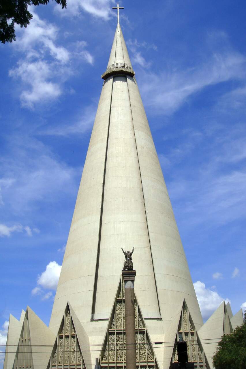 10º monumento em altura no mundo e o segundo na América do Sul, possui um diâmetro de 50 metros e uma nave única, circular, com diâmetro interno de 38 metros. O cone possui uma altura externa de 114 metros, sustentando uma cruz de 10 metros, perfazendo um total de 124 metros de altura. Sua pedra fundamental, um pedaço de mármore retirado das escavações da Basílica de São Pedro pelo Papa Pio XII, foi lançada em 15 de agosto de 1958. A Catedral, dedicada a Nossa Senhora da Glória, foi construída no período de julho de 1959 e inaugurada em 10 de maio de 1972. Em 21 de janeiro de 1982 recebeu o título de Basílica Menor.