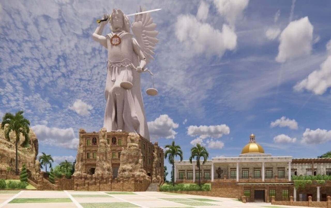 A imagem será colorida, com São Miguel segurando uma espada na mão direita e uma balança na mão esquerda. A obra também prevê um mirante, localizado no peito da estátua do Santo Anjo.