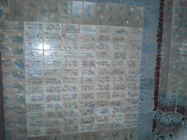 Para quem chega ao Santuário salta aos olhos os as lajotas nas paredes. São muitas essas peças afixadas nas paredes, quase incontáveis, cada uma carregando, simbolicamente, a vida de alguém que foi amado nesse mundo e que recomendamos ao coração de Jesus.