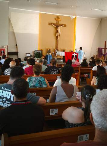 A liturgia das missas, a reunião missionária e a formação sobre as etapas da missão possibilitaram um breve conhecimento do “Querigma” da Missão Redentorista.