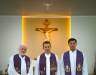 Celebrantes, ministros e auxiliares após celebração na ocasião da segunda visita missionária
