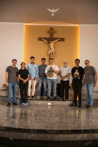 O lema da missão também foi divulgado na paróquia visitada pela segunda vez. Ele traz todo o conteúdo da Missão: “Unidos em Cristo, com Maria, para viver e crescer em comunidade”.