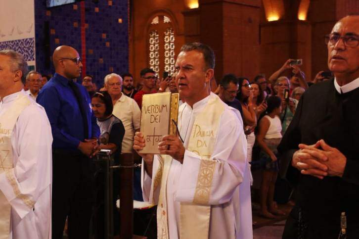 Pe. Carlos Alberto, C.Ss.R., durante a Proclamação da Palavra do Senhor