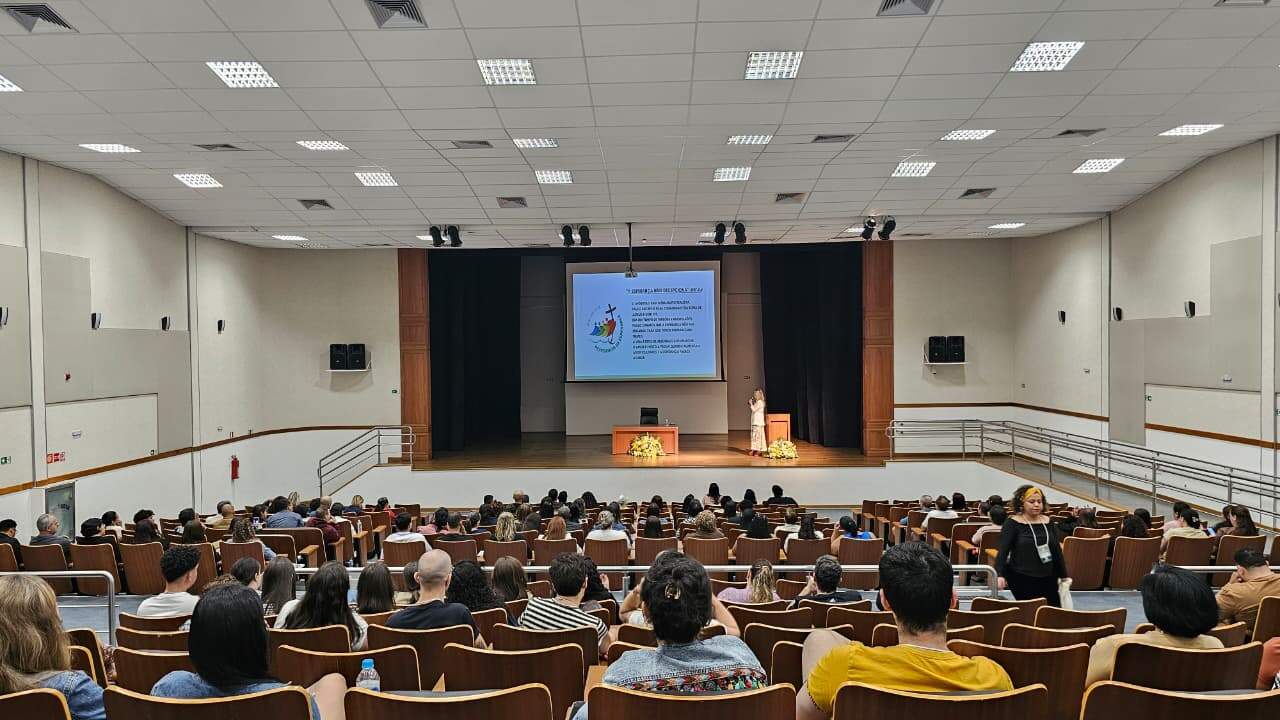 A jornalista da TV Aparecida, Camila Morais, também participou do encontro, sendo responsável por ministrar um momento formativo que abordou o tema “Ano Santo 2025”.