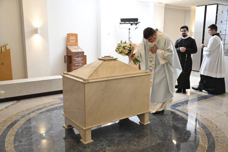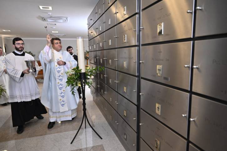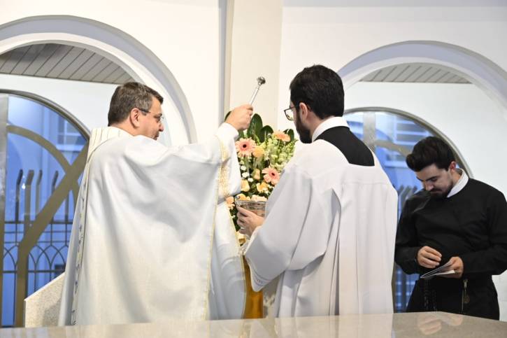 Ao final da celebração, Pe. Marlos dirigiu-se ao memorial, onde se encontram os restos mortais dos redentoristas que o precederam. Em seguida, aspergiu os túmulos e seguiu para a bênção de todo o Convento Histórico.