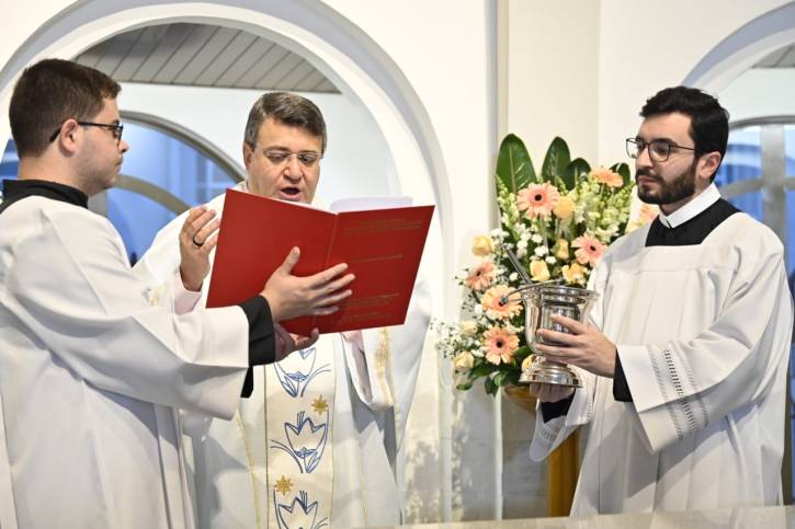 Ao iniciar a celebração, Pe. Marlos agradeceu a todos os colaboradores que, com grande dedicação, trabalharam ativamente na revitalização desses espaços tão importantes para os Missionários Redentoristas.