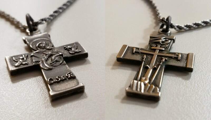 “Nela não temos Cristo preso na cruz, porque ela é a Cruz da Redenção. Além da cruz, temos os instrumentos da Paixão, a lança, a esponja, os cravos, e ainda a representação do Monte Calvário, presentes no brasão redentorista. A pomba acima da cruz simboliza o Espírito Santo. No verso, temos a imagem de Nossa Senhora do Perpétuo Socorro, devoção que acompanha a congregação desde que o Papa Pio IX a entregou aos redentoristas e pediu que a tornasse conhecida em todo o mundo”.