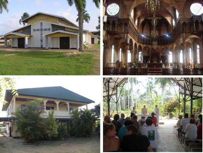 No sentido horário: Igreja de Latour, maior paróquia atendida pelos religiosos. Interior da Igreja Catedral.