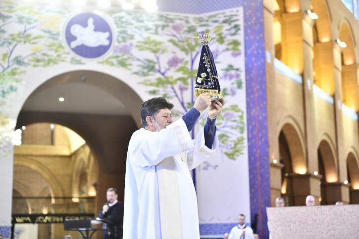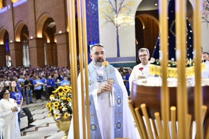 Neste 9º e último dia da Novena, o tema refletido foi “Com Maria, ser Família dos Devotos, Peregrina da Esperança”, tendo como pregador o Pe. Adam Rapala, C.Ss.R., ecônomo adjunto do Santuário Nacional.