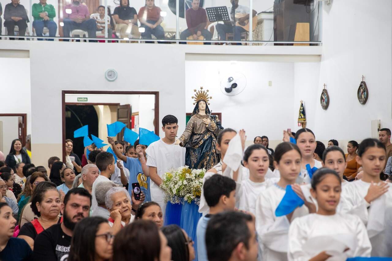 Este ano, o tema central da Novena e Festa foi em sintonia com o Jubileu: “Com Maria, somos peregrinos de esperança”. Durante a Novena Preparatória, buscou-se o aprofundamento do significado do Ano Jubilar para a nossa caminhada eclesial e de fé.