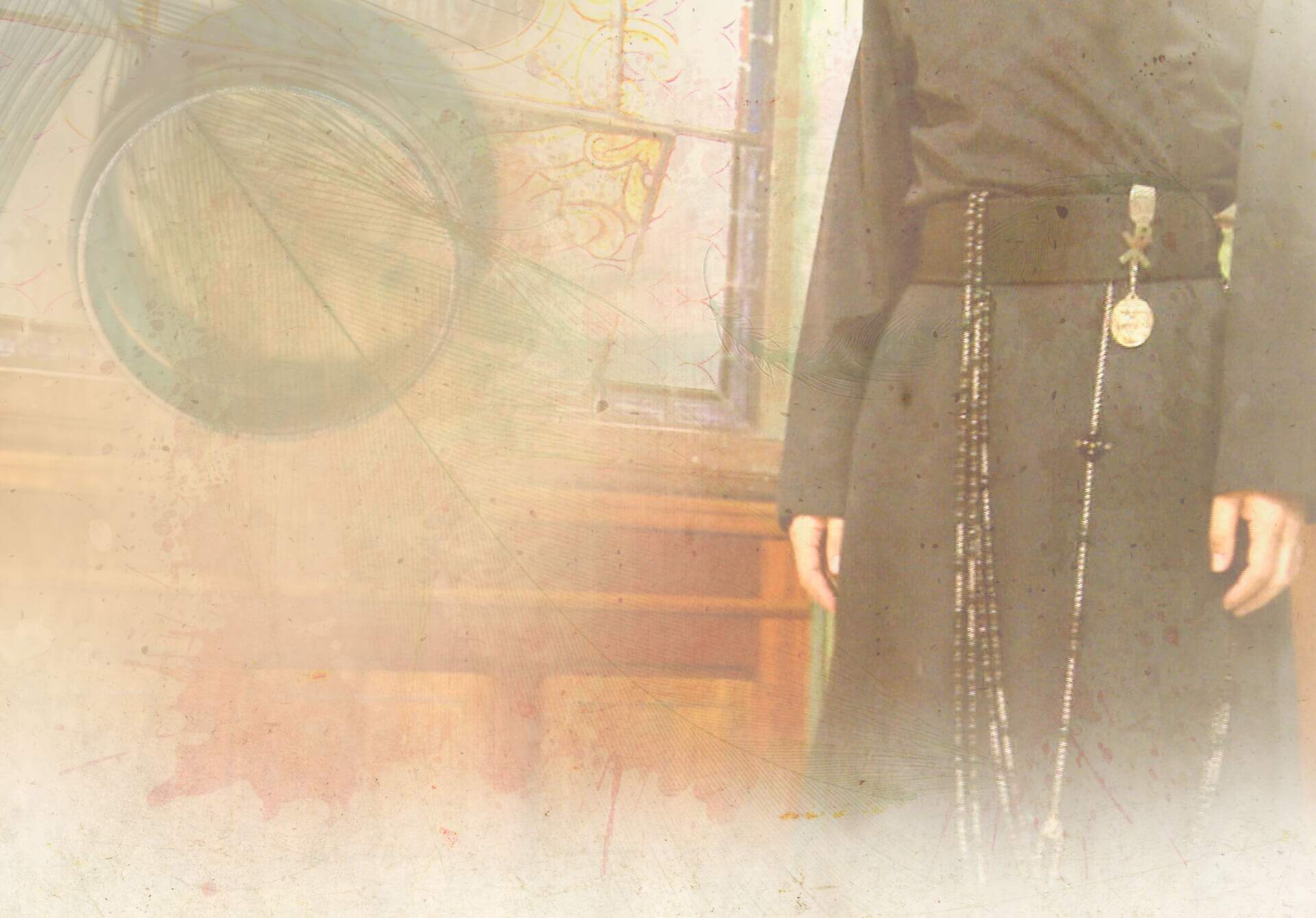 Scala - Irmão Vito Curzio (1706 - 1745) teve a inspiração e idealizou o Escudo da Consagração: a cruz plantada sobre os três Montes: Sinai, Calvário e Tabor, ladeada com a lança e o caniço com a esponja. Ele o deixou gravado a estilete na parede do forno da Casa de Anastácio.