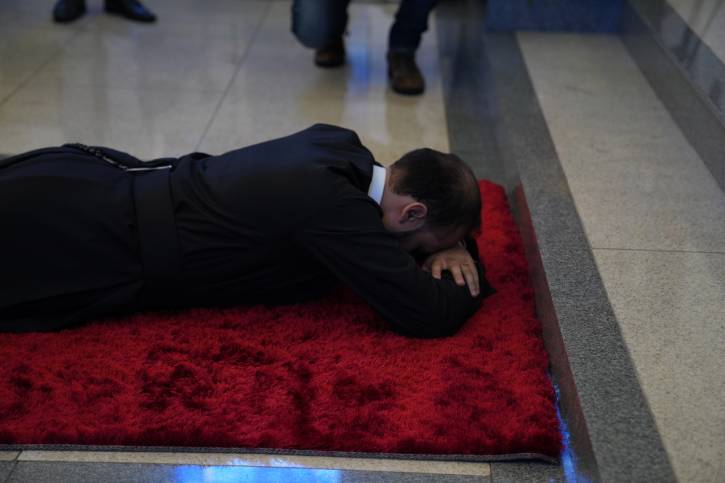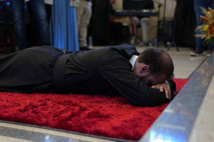 Ir. Thaylor oferece flores a São José, padroeiro de sua paróquia de origem