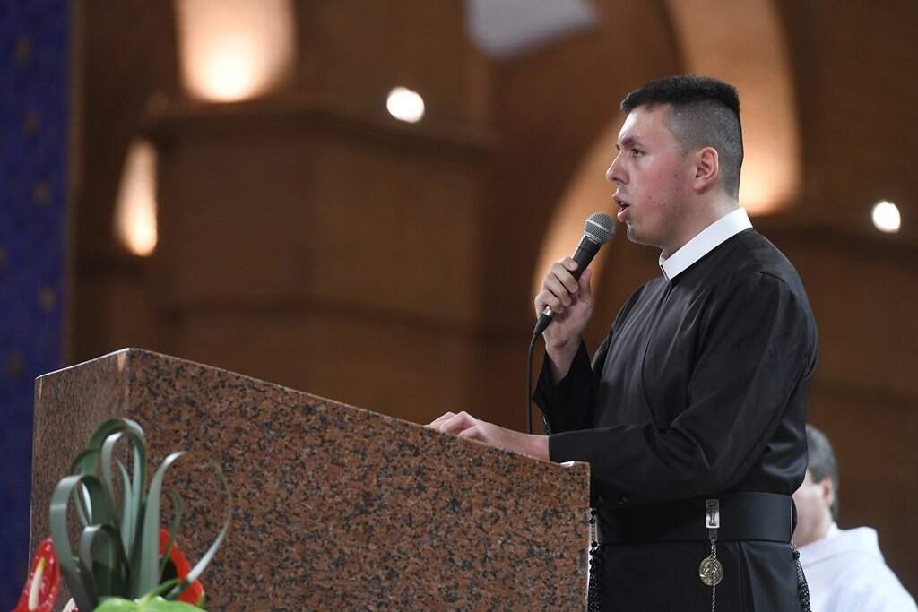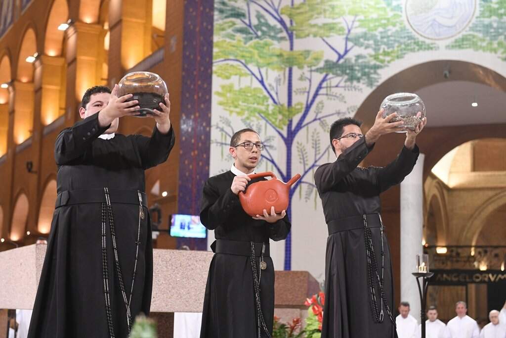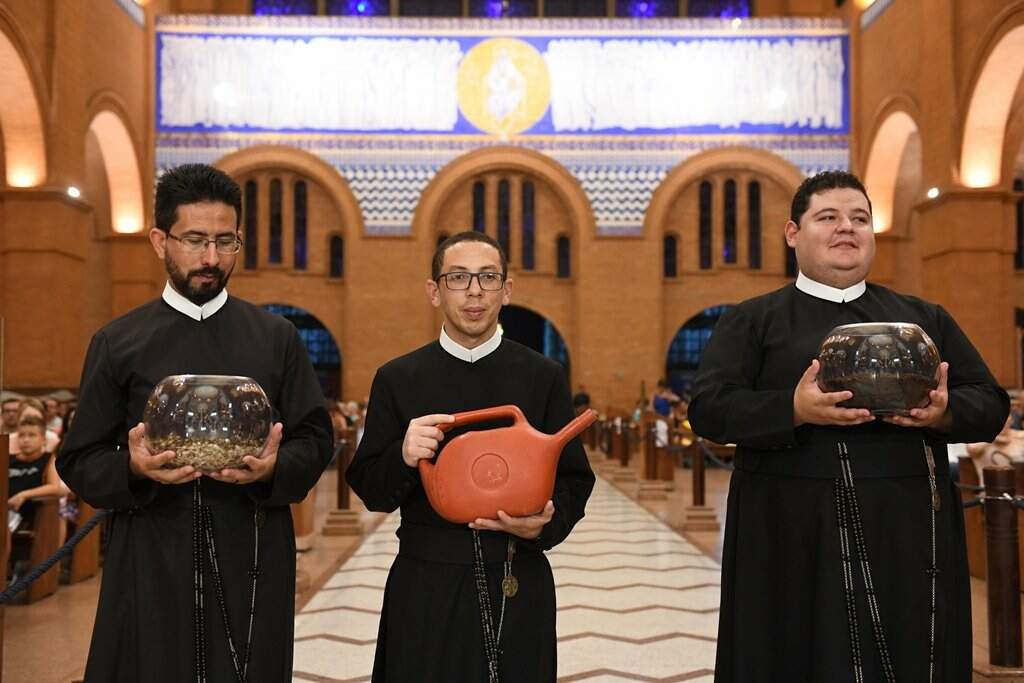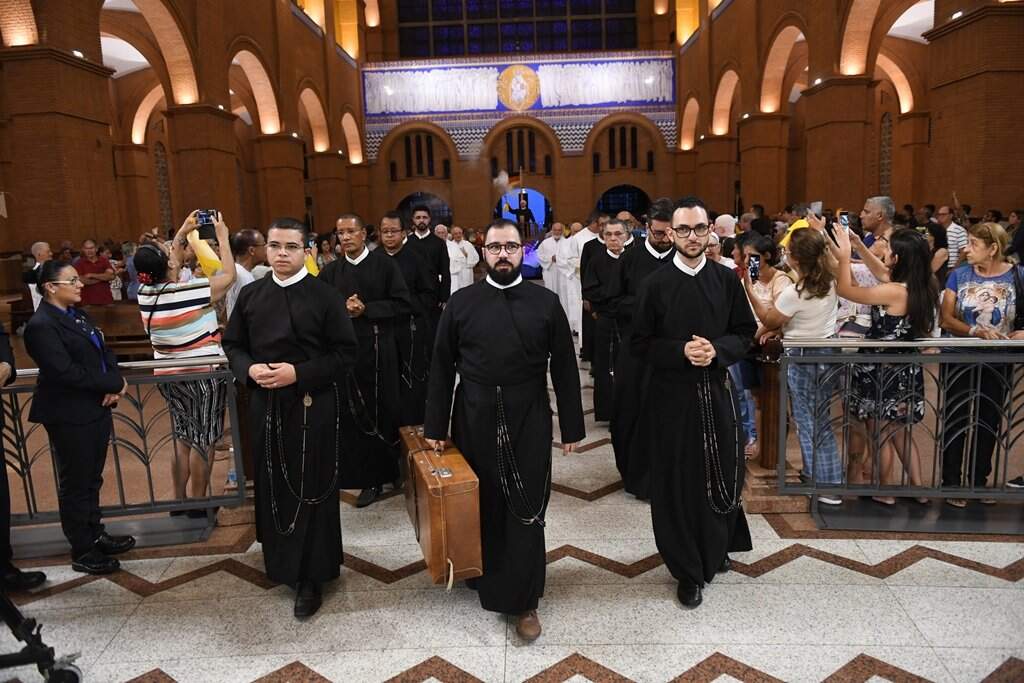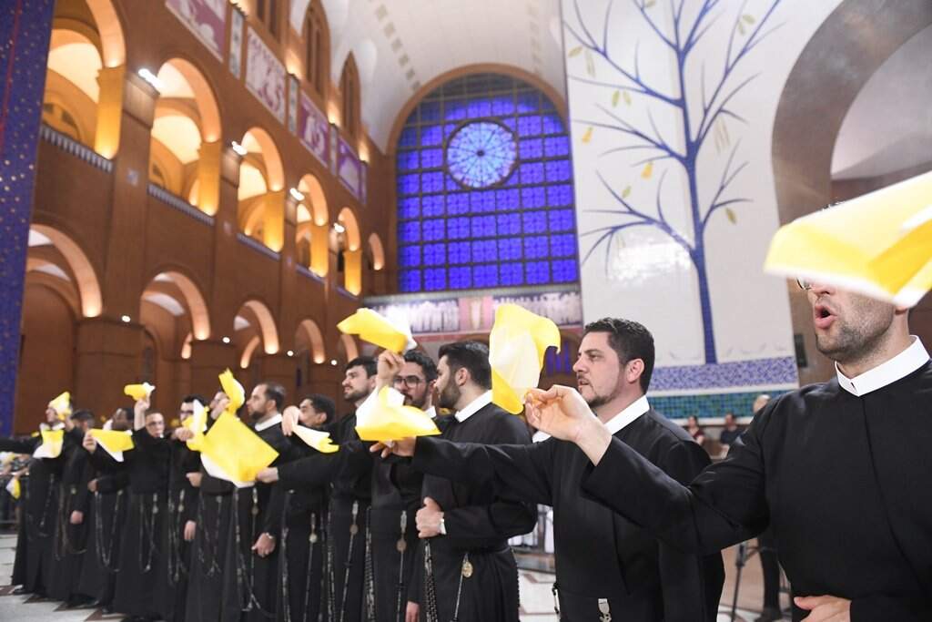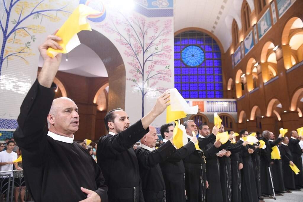 Continuando o ato dentro da Basílica, todos os padres e irmãos foram convidados a se aproximar do Altar e ali cantar a Salve Rainha em latim, como forma de homenagem e entrega amorosa à Maria.