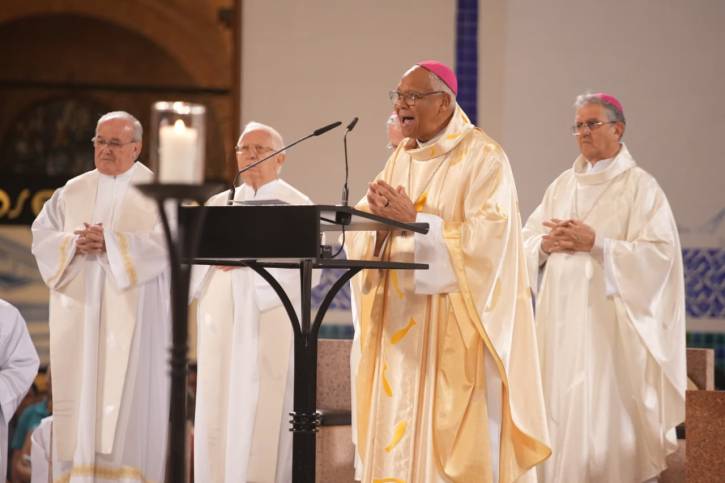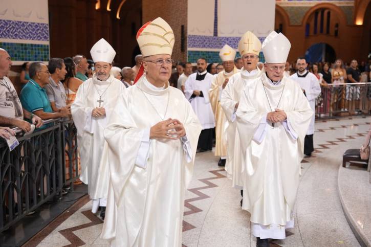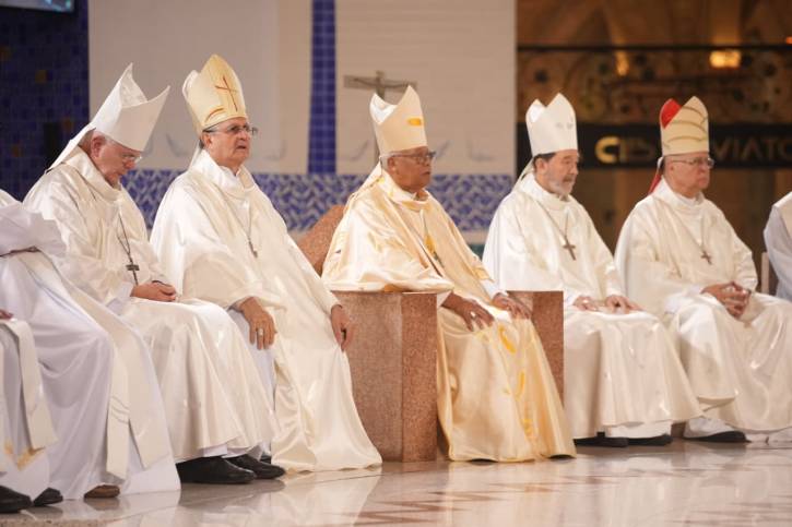 Bispos Redentoristas do Brasil durante celebração no Altar Central do Santuário Nacional