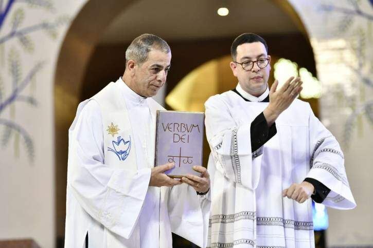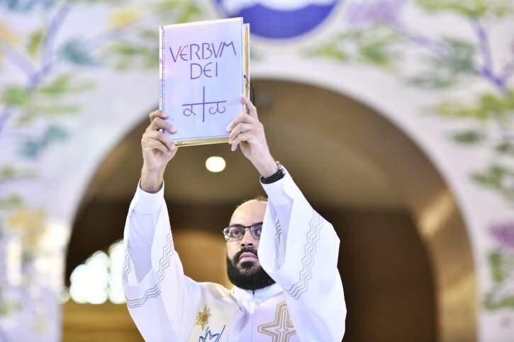 A pregação foi realizada pelo Pe. Diego Antônio da Silva, C.Ss.R., que trabalha na Pastoral do Santuário Nacional. Ele fez uma reflexão sobre o tema: “Mãe Aparecida, conduzi-nos até a Porta Santa, que é Jesus!”.
