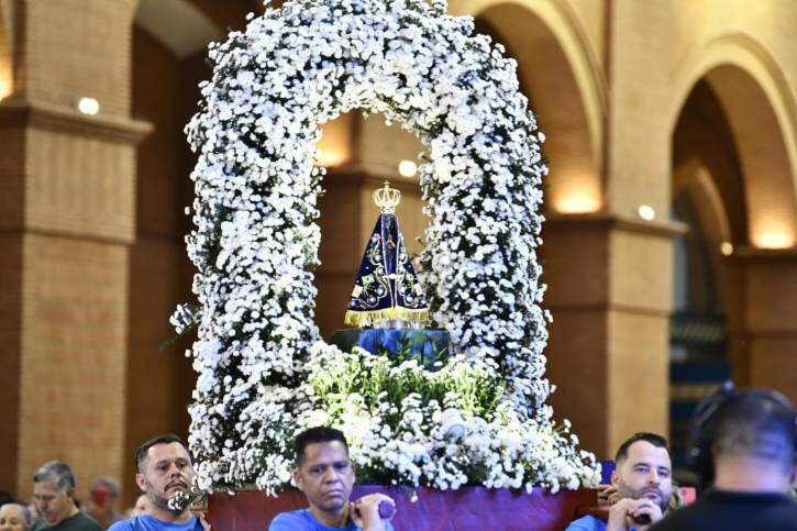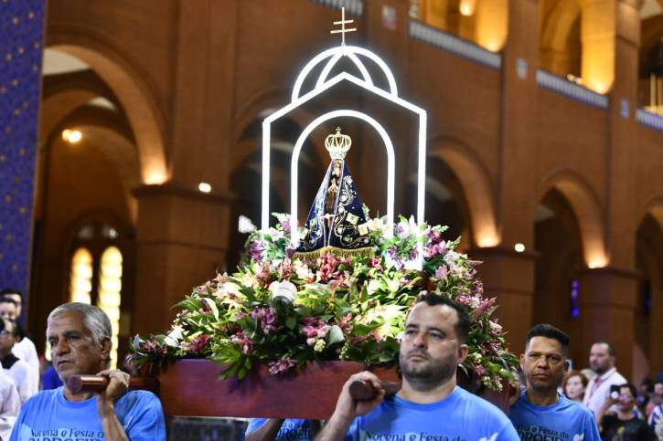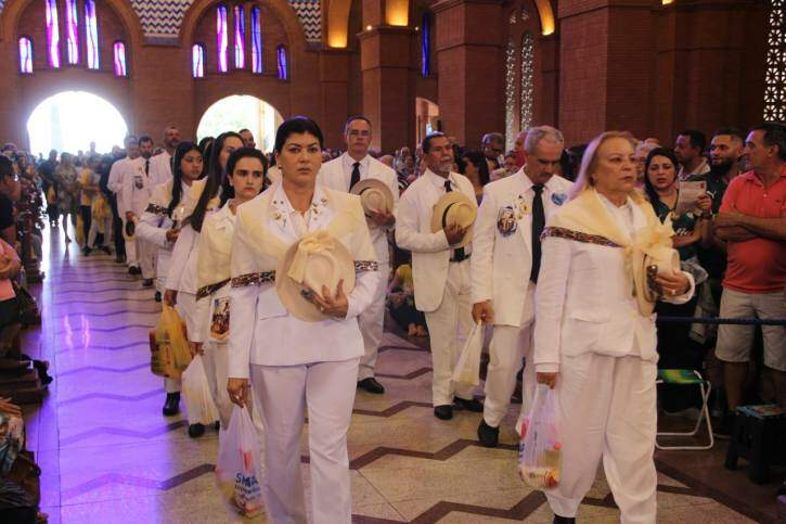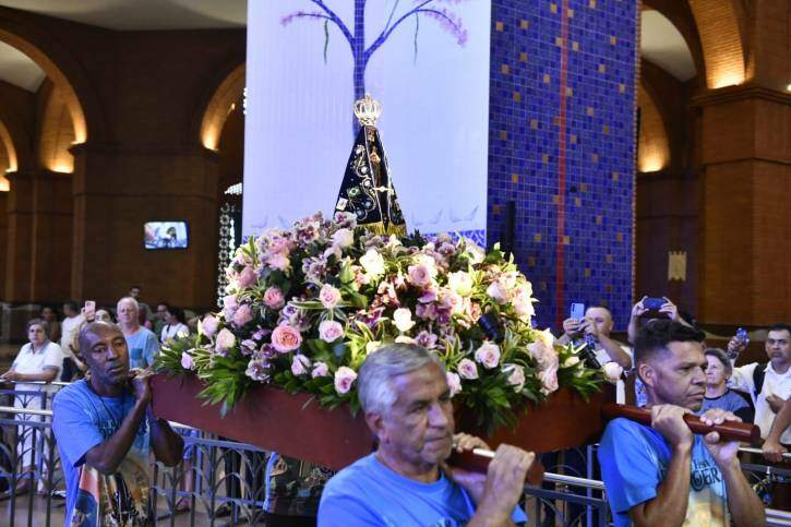 Durante a celebração, a imagem de Nossa Senhora Aparecida entrou acompanhada pelo Movimento Equipes de Nossa Senhora do Setor de Guaratinguetá, a Casa de Apoio Sol Nascente e a Fazenda da Esperança.