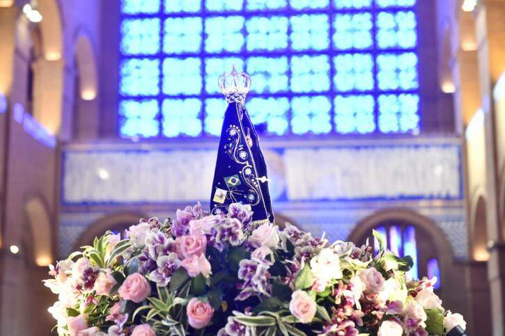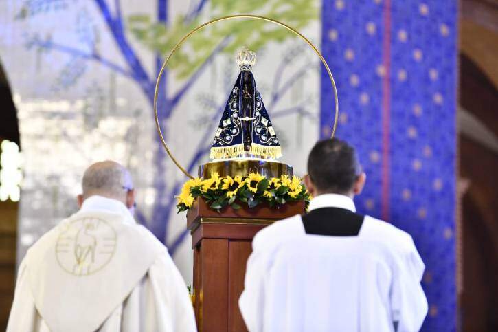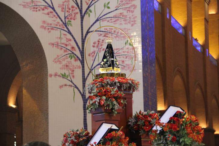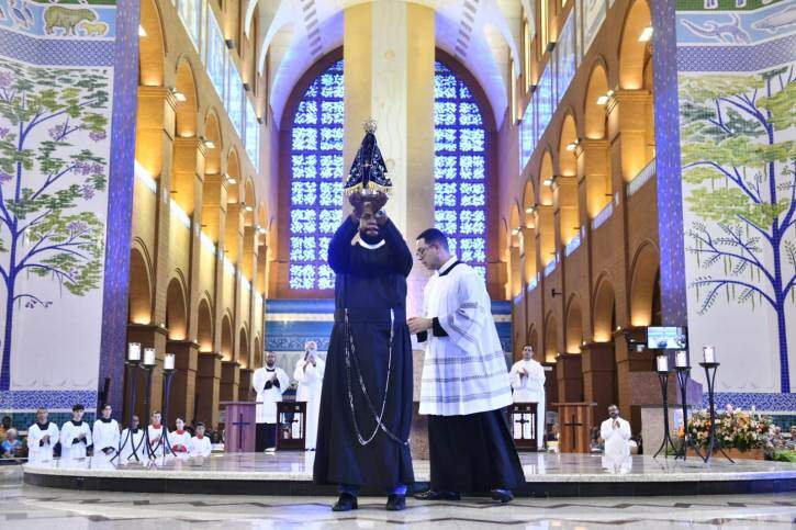 O Santuário Nacional acolheu um grande número de fiéis neste sábado (5), para o 3º dia da Novena da tarde, em preparação para a Festa da Padroeira. Em celebração no Altar Central, fomos convidados a refletir sobre o tema: “Mãe Aparecida, fazei-nos fiéis à fé em Jesus Cristo”.