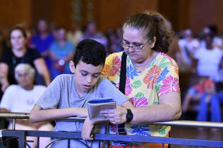 Em tom catequético, o prefeito de Igreja do Santuário Nacional interagiu com as crianças, perguntando sobre o amor que devemos ter pela Mãe Aparecida e por Jesus Cristo, e a importância de rezar: “Quem reza vai para o céu e quem não reza vai para o beleléu”, afirmou Pe. Ferdinando, animando crianças e adultas presentes no 7º dia da Novena da tarde.