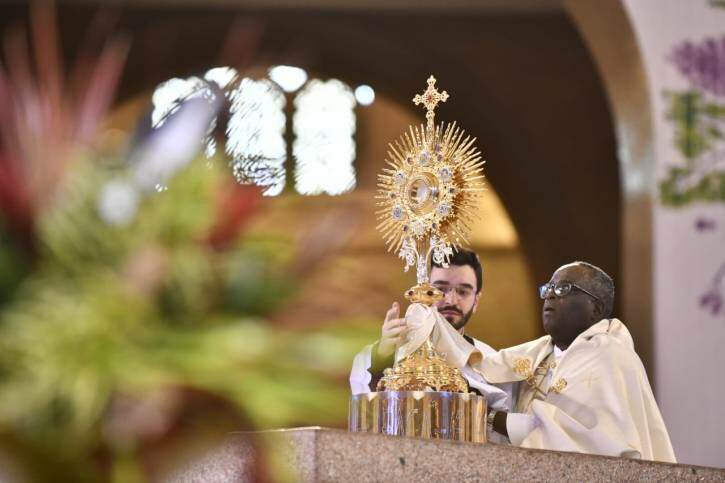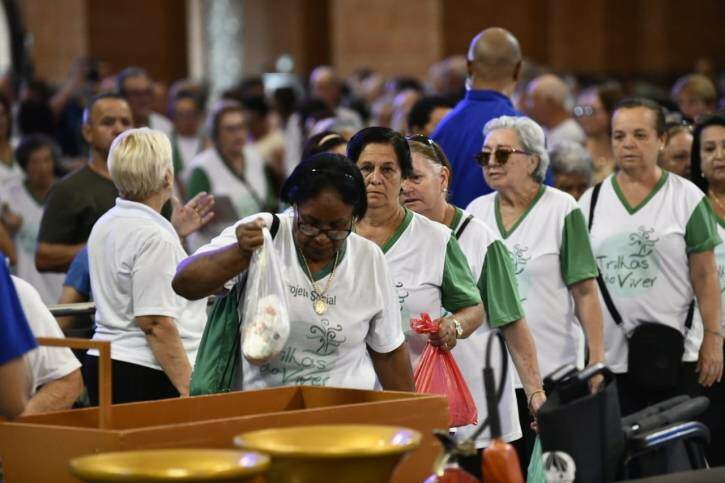 No final da celebração, rosas foram oferecidas à Nossa Senhora Aparecida, como sinal de reconciliação da humanidade com Deus.