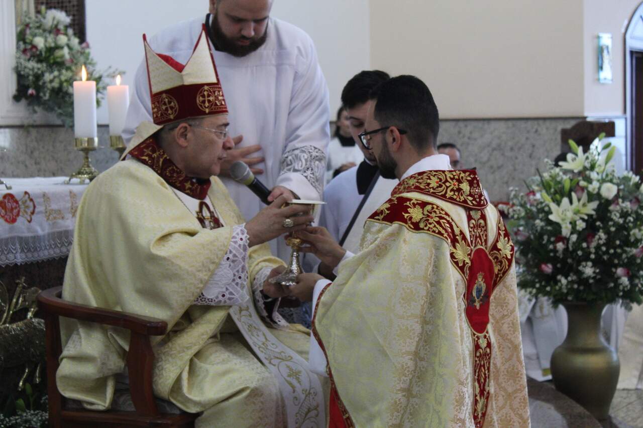 O neo-sacerdote Guilherme Dias Viana, C.Ss.R, foi ordenado presbítero, pela imposição das mãos e Prece de Ordenação de Dom Edmilson Amador Caetano, Bispo Diocesano de Guarulhos.