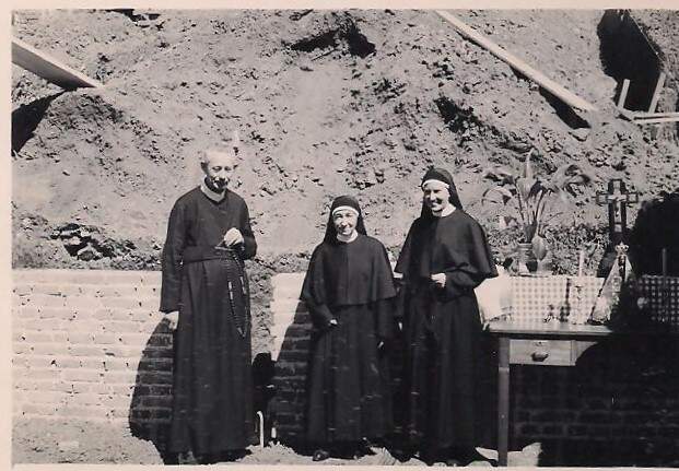 Pe. Valentim Mooser e as Irmãs Canisianas em foto de 15 de agosto de 1951