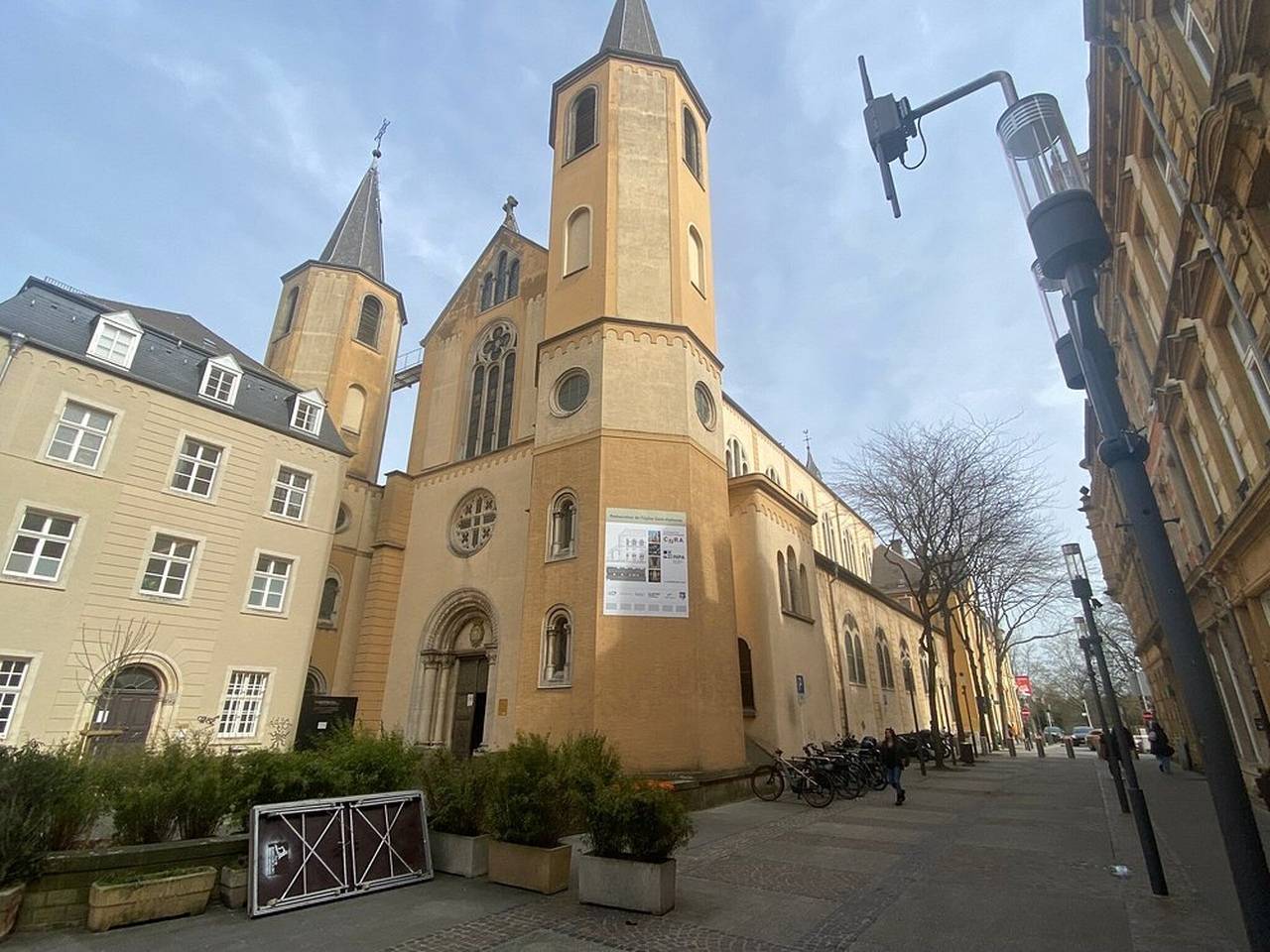 O edifício localizado no centro de Luxemburgo possui uma arquitetura em estilo neorromânica. A fachada é ladeada por duas torres octogonais. No arco do portal da igreja, que traz a inscrição tirada do salmo 85: Omnes gentes quascumque fecisti venient et adorabunt coram te Domine, está colocado o brasão da Congregação do Santíssimo Redentor.