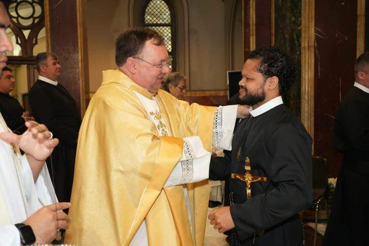 Ao final da celebração, um momento emocionante: o Padre Rogério Gomes entregou pessoalmente a cada um dos irmãos presentes a cruz redentorista, sinal de sua pertença à congregação e de sua missão. Um gesto simples, porém profundo, que transformou a celebração em um ato de mandato: retornar às suas comunidades e países, levando consigo o carisma renovado pelo encontro.